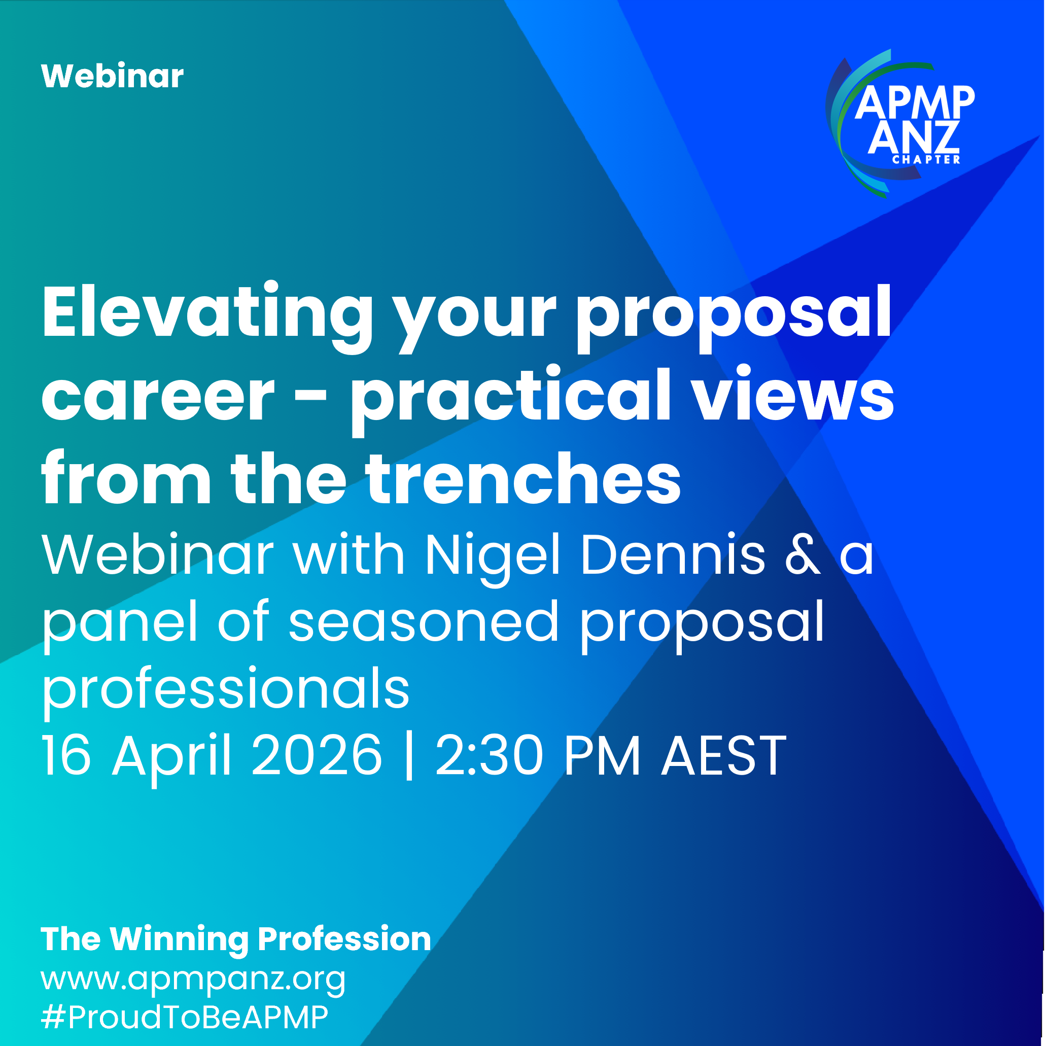 The session will be facilitated by our ANZ Chapter’s Certification Lead and APMP Fellow -Nigel Dennis.