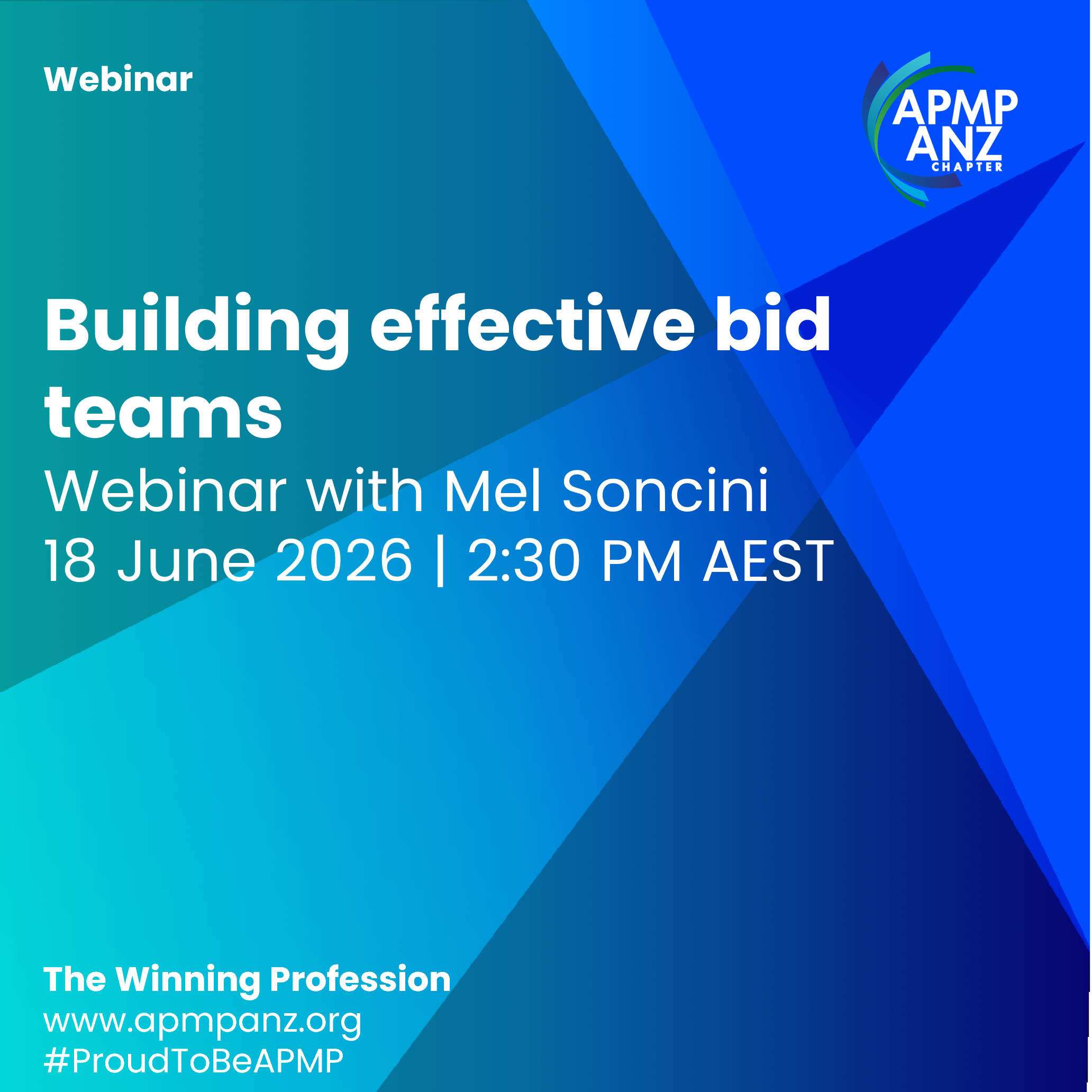 Join us for our free webinar for an inspiring and practical conversation with seasoned proposal professionals - this panel webinar will offer insightful views from APMP ANZ Chapter members at various stages of their career. This dynamic panel are all united by their passion for learning and have completed different levels of the APMP Certification. Learn what the Certification means to each of them and how it is helping to shape their career(s) and the real impact its had in their management of proposal development.